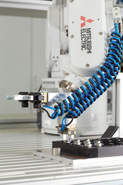 As soon as sub-assembly stocks drop below defined minimum levels, the warehouse will communicate autonomously with the robot and production will be increased accordingly. Thanks to an extensive coverage of protocols, interfaces and connectors, Mitsubishi Electric robots can be easily integrated into factory control and IT networks without any additional development work.