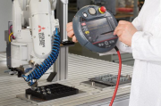 The high variability of batch sizes the company manufactures makes frequent retooling necessary, as a result Lenord + Bauer required precision operation and for re-programming to be carried out as quickly as possible. A Mitsubishi Electric RV Series articulated arm robot therefore proved to be an ideal choice.