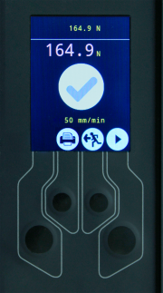 Peak force at break is displayed along with clear pass and fail indication. Four speed settings are available: 25, 50, 100 and 200 mm/min. to comply with all regular test standards. Units of force can be displayed in N, kgf or lbf.