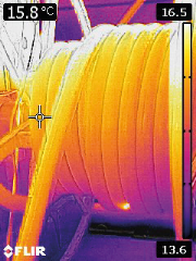 “When all our traditional methods of fault detection fail, we know that we can still use our FLIR camera to locate the problem” Andreas Becker continued. “It is particularly effective on faults at the end of the cable, right at the point of connection, that are difficult to detect by other means. The camera can see the heat difference without any problem. And it’s also ideal for inspecting the entire length of a cable as it is wound from reel to reel.”