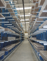 The completed installation has 200 metres of racking 9.6 metres high in single-sided and double-sided runs. With eight arms fitted throughout, some 1,800 linear metres of storage have been provided. The arms are 900mm long and support loads up to 700kg. They can be adjusted vertically in increments of 100mm and have a pre-manufactured rake of two degrees.